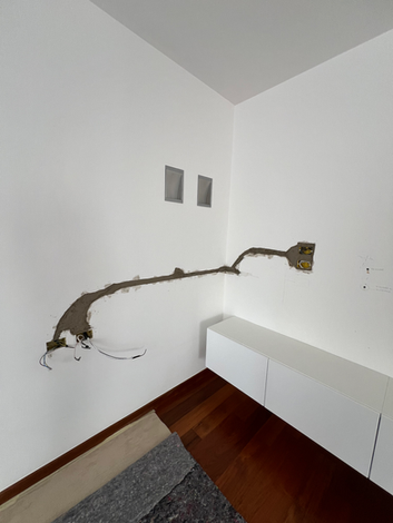 In questo appartamento a Stezzano, il nostro cliente ci ha chiesto di spostare le prese per la TV. Tuttavia, nella nuova posizione scelta mancavano sia la corrente che il cavo dell’antenna, rendendo l’operazione apparentemente impossibile.